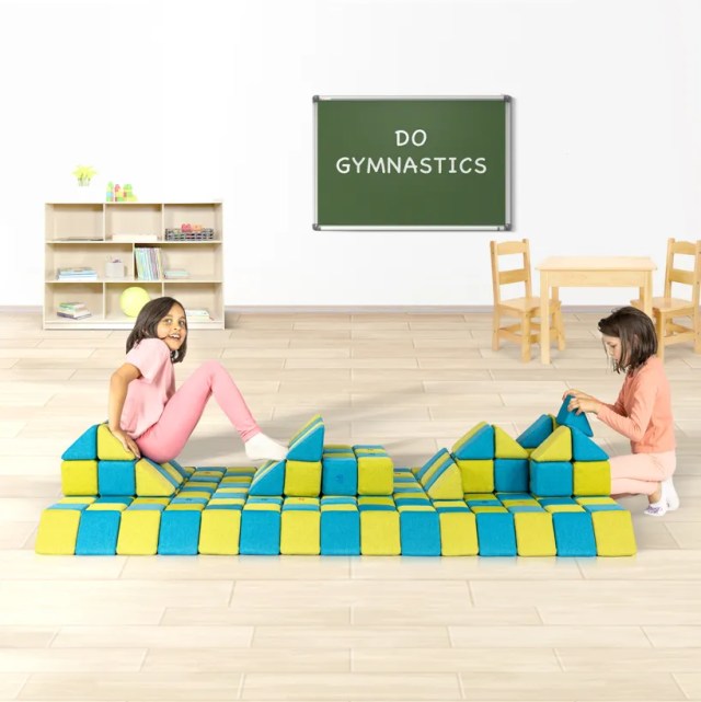 Suured esemed ja figuurid, peidikud, mööbel või treeningobjektid.