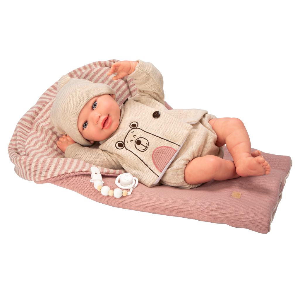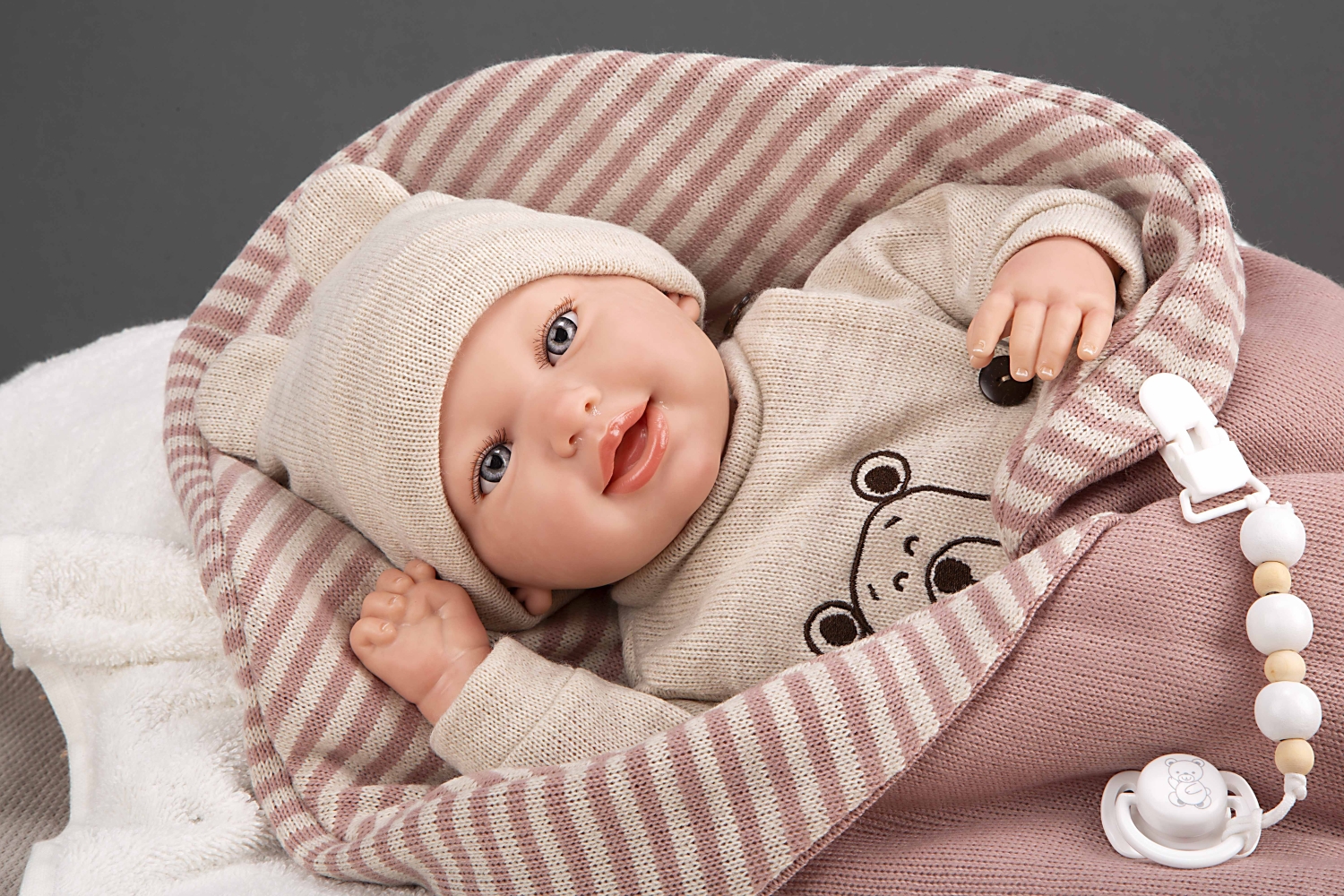 Arias Reborn beebinukk beežide riietega, 45 cm