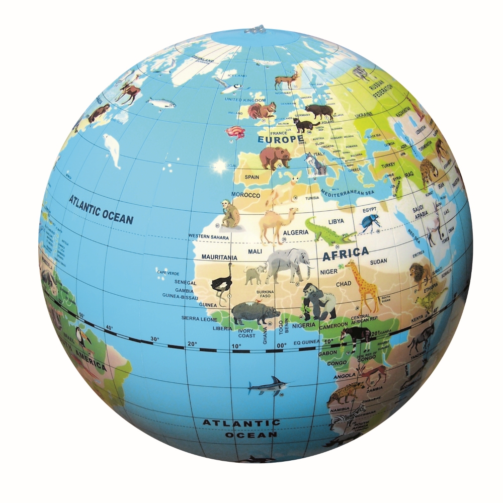 Täispuhutav gloobus Maailma Loomad, 42 cm