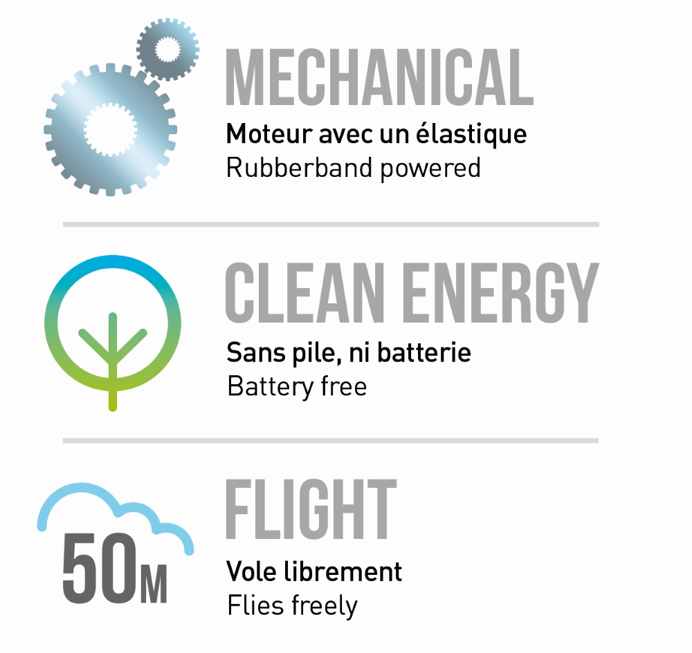 MEHAANILINE. Jõuallikaks on kummipael. Rebenemiskindlad tiivad.