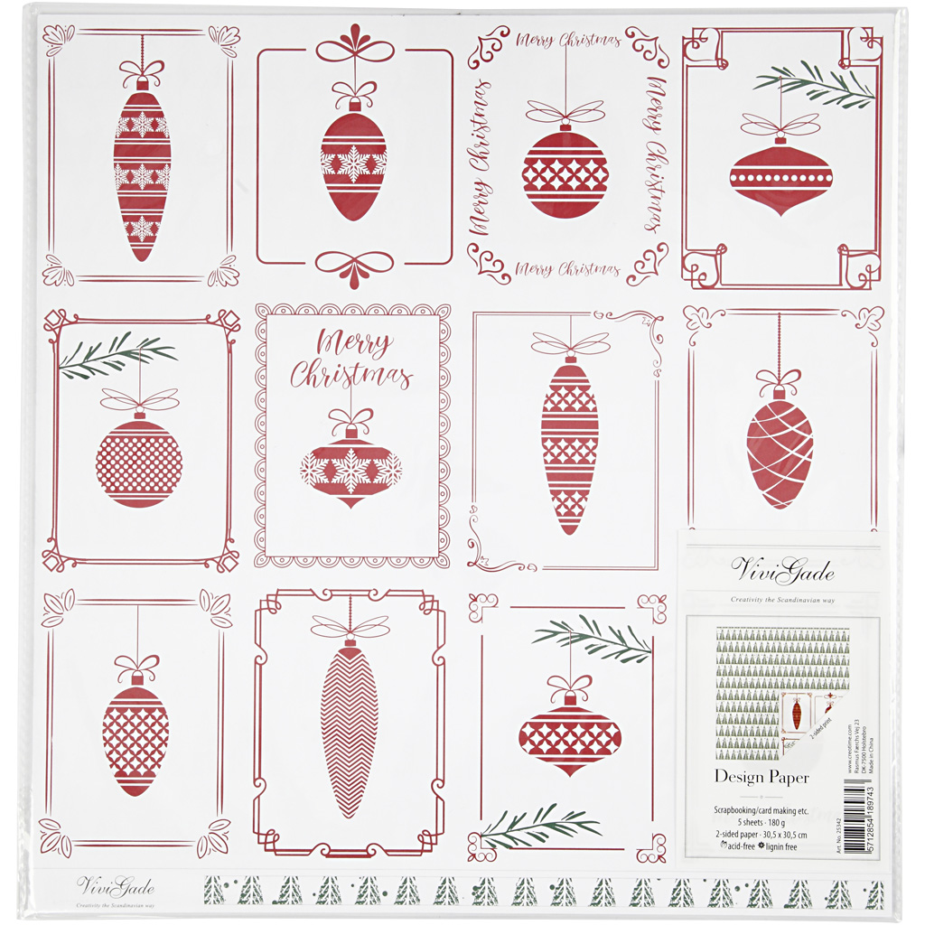 Disainipaber, jõulupallid ja jõulupuud, leht 30,5×30,5 cm, 180 g, 5 lehte/ 1 pakk