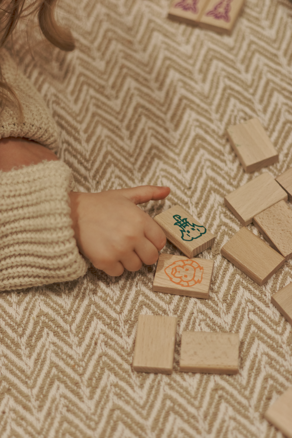 Asetage kõik mänguklotsid juhuslikus järjekorras lauale. Mängijad püüavad kordamööda korjata kahte identset klotsi. Kui te ei arvanud õigesti, asetage klots tagasi samasse kohta, kus see oli. Proovige meeles pidada sobivate klotside asukohti. Võidab see, kes kogub kõige rohkem paare.