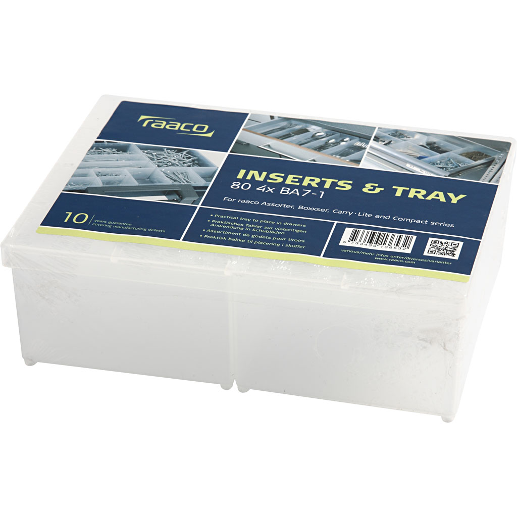 Polüpropüleenist (PP) valmistatud Raaco sisestuskarp – saab kasutada hoiukastide alajaotamiseks