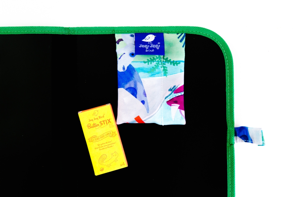 Komplektis on korduvkasutatav ja kustutatav matt ning pakk ButterStix® – tolmuvabu kriidipulki.