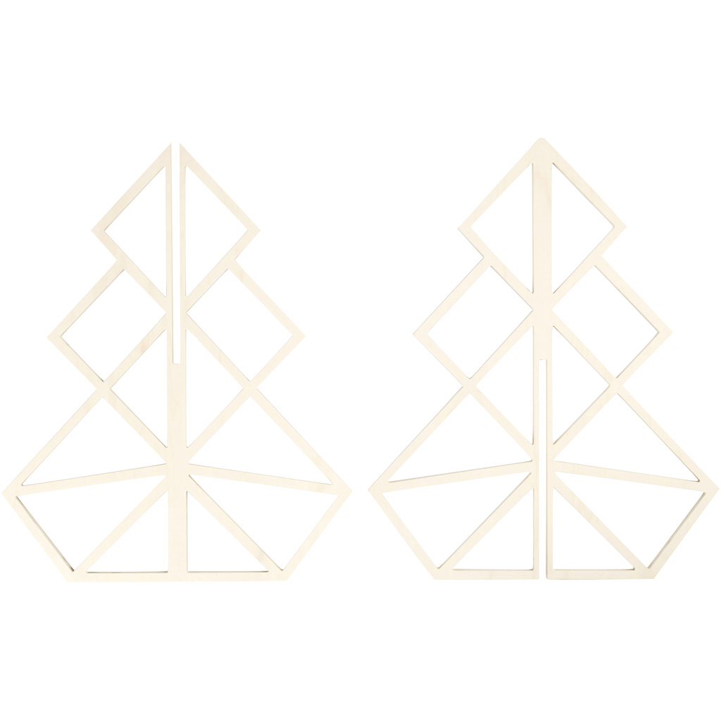 Pärane jõulupuu geomeetrilise kujuga 3 mm paksust puidust. Kokkupandav kahest osast koosneva piluga