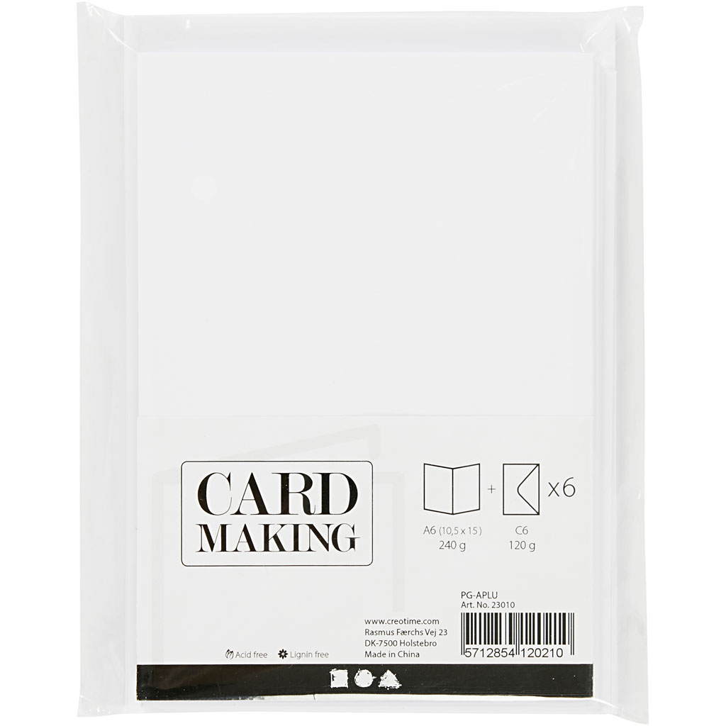 Kaardid ja ümbrikud, kaardi suurus 10,5×15 cm, ümbriku suurus 11,5×16,5 cm, 110+230 g, valge, 6 komplekti/ 1 pakk