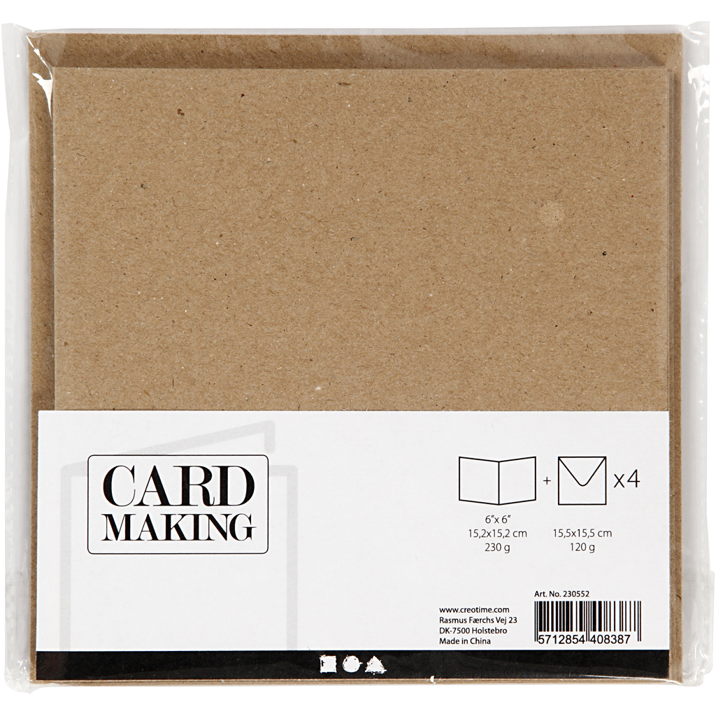 Kaardid ja ümbrikud, kaardi suurus 15,2×15,2 cm, ümbriku suurus 16×16 cm, 230 g, naturaalne, 4 komplekti/ 1 pakk
