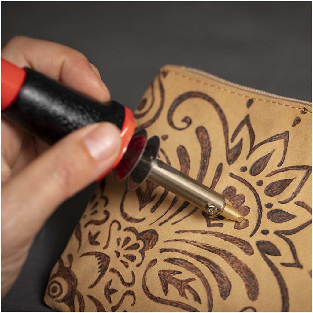 Väike clutch kott on valmistatud raskest nahast paberist, mis avaneb/sulgeb kuldse tõmblukuga, sellel on eemaldatav 29 cm pikkune käterihm. Nahapaber (0,55 mm) on valmistatud tselluloosist ja lateksist. See näeb välja nagu nahk ja sobib õmblemiseks või kaunistamiseks. Väljendus muutub pesemisega eriti rustikaalseks. Pesu maksimaalselt 40 ° C, kahaneb umbes 5%. Kõige kergemini töödeldav niisketes tingimustes.