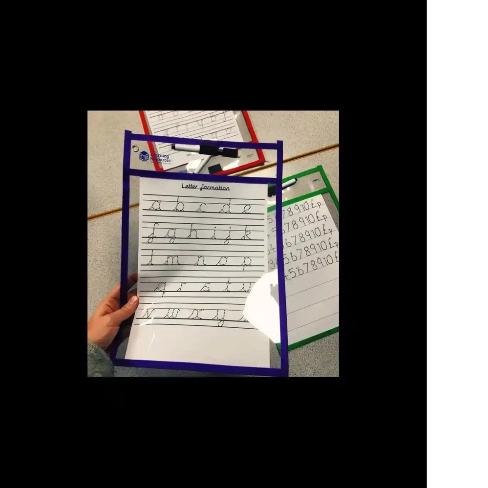 - Kasutamine: Valige soovitud õppematerjal või tööleht ja libistage see lihtsalt tasku avausest sisse. Veenduge, et paber oleks taskus sirge. Seejärel saavad lapsed või õpilased kirjutada otse tasku läbipaistvale pinnale kaasasolevate mustade kustutatavate markeritega.