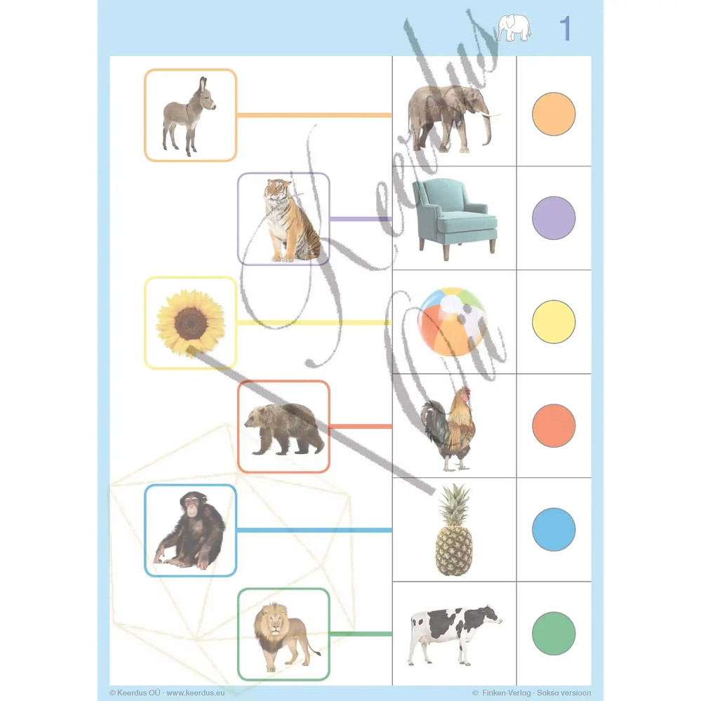- Õppekaardid: Komplekt sisaldab erinevaid teemapõhiseid kaarte, mis on valmistatud kvaliteetsest ja vastupidavast materjalist. Iga kaart sisaldab mitmeid ülesandeid, mis on seotud konkreetse õppevaldkonnaga, nagu värvid, kujundid, numbrid ja loogika.