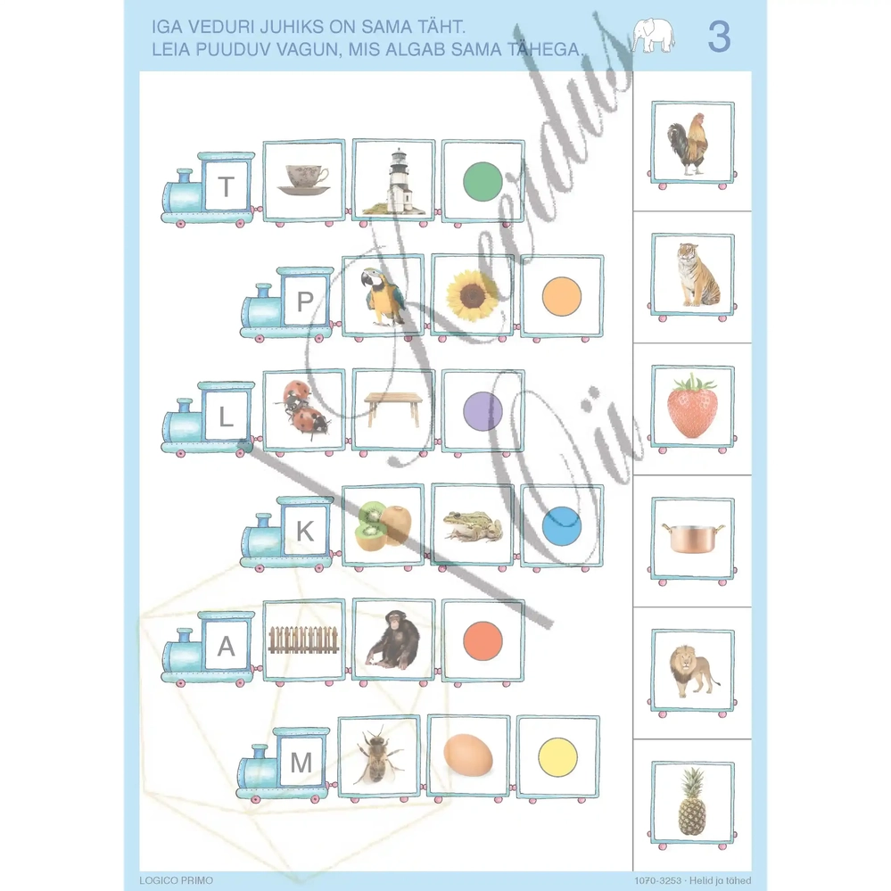 Logico Primo “Helid ja tähed” on hariduslik töölehtede komplekt, mis on mõeldud lastele alates 3. eluaastast. See komplekt aitab lastel õppida ja harjutada häälikuid ning tähti, arendades samal ajal nende keelelisi oskusi ja loogilist mõtlemist.