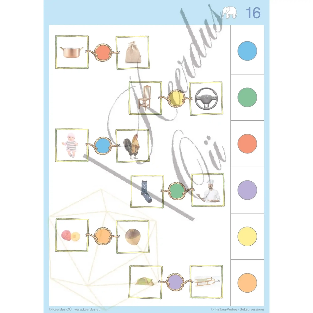 - Kontrolli vastuseid: Pärast kõigi ülesannete lahendamist saab laps pöörata kaardi ümber ja kontrollida, kas nupud on õigetel kohtadel, võimaldades enesekontrolli ja vigade parandamist.