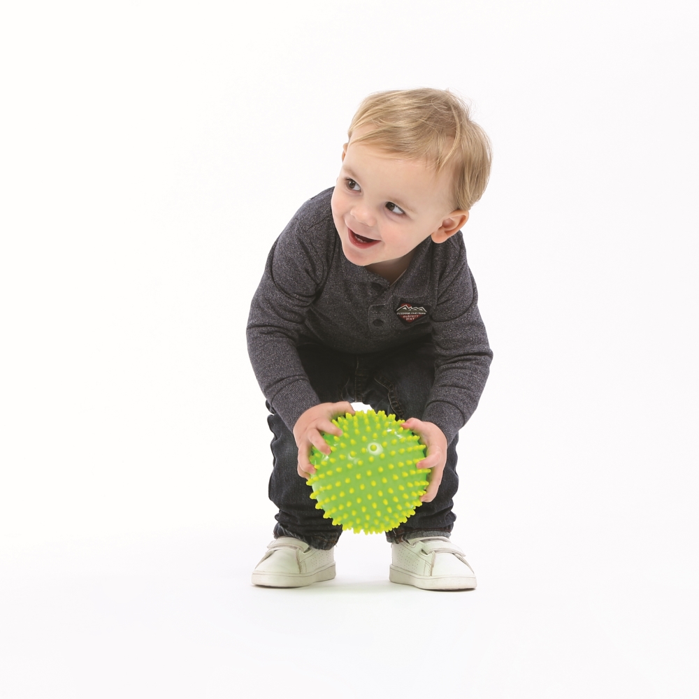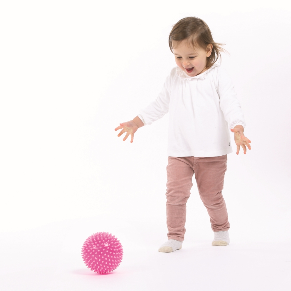 Pallil on väikesed “naelad”. Neid puudutades saab laps oma meeli arendada. Palliga mängimine aitab arendada motoorseid oskusi, koordinatsiooni. Pall ergutab puuteretseptoreid, mis aitab beebidel parandada tasakaalutunnet, mis aitab kõndima õppida.