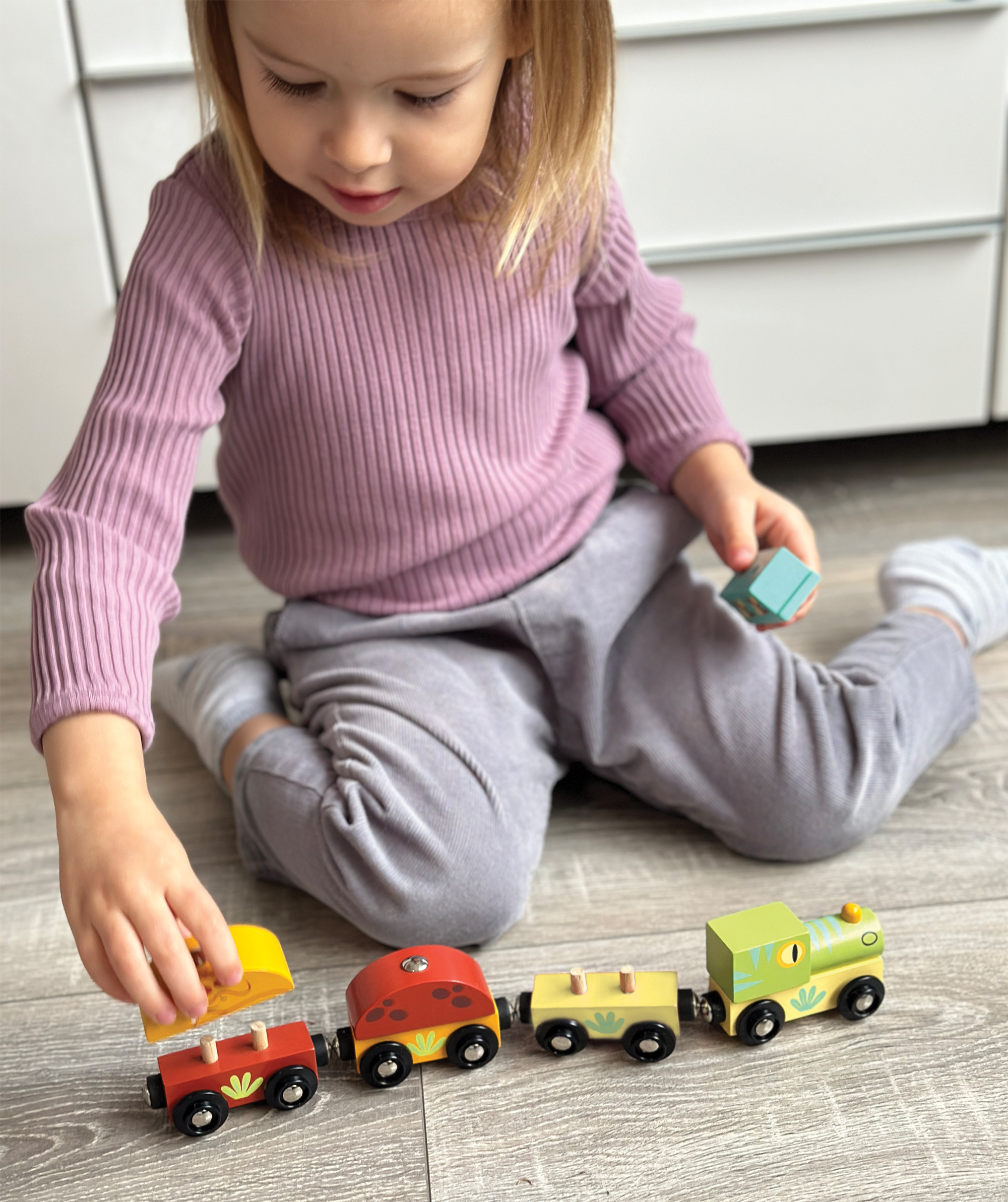 4-osaline komplekt, mis sisaldab vedurit ja 3 kaubavagunit. Dinosaurustega vagunikatted on eemaldatavad. Rongi komponendid on omavahel ühendatud magnetitega ja neid saab kombineerida teiste Mentari rongikomplektidega.