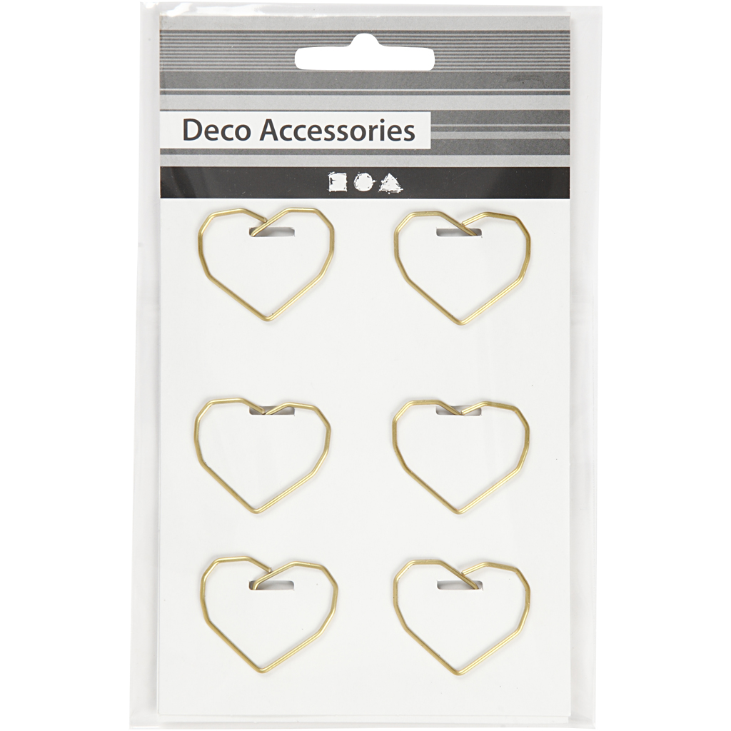 Metallist kirjaklambrid, süda, suurus 30×20 mm, kuldne, 6 tk/ 1 pakk