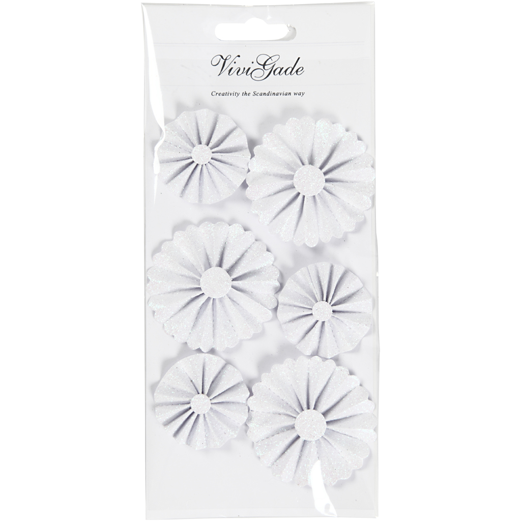 Paberist rosetid, diameeter. 35+50 mm, valge glitter, 6 tk/ 1 pakk