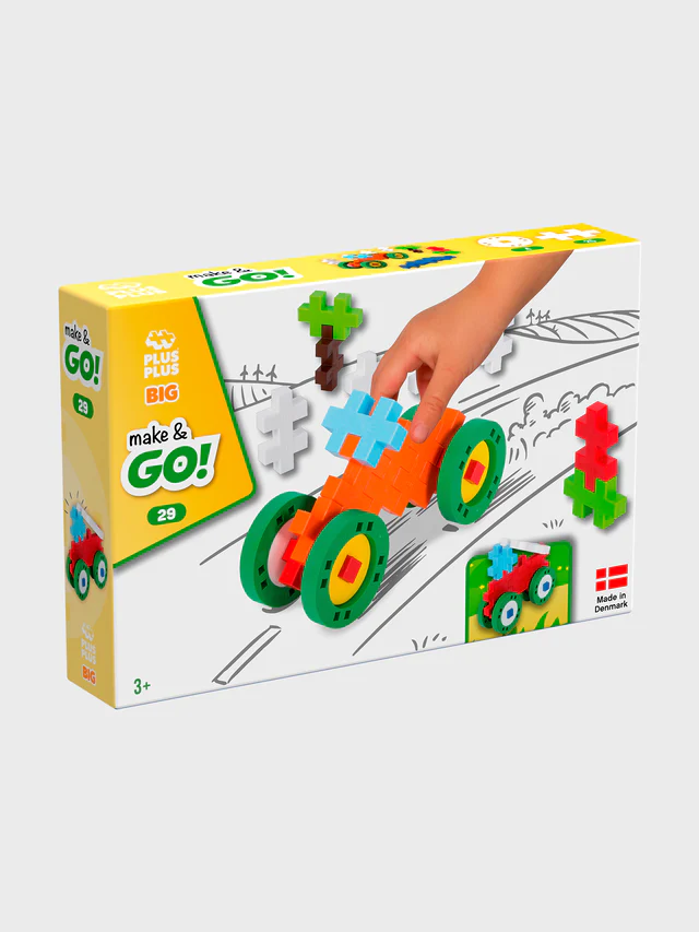 Plus-Plus BIG Make & Go 29-osaline on arendav ja loominguline ehituskomplekt 1–6-aastastele lastele. Suured, turvalised ja kergesti haaratavad plokid arendavad peenmotoorikat, ruumilist mõtlemist ja kujutlusvõimet. Komplekti kuuluvad rattad lisavad ehitistele liikuvust, võimaldades luua põnevaid sõidukeid. Valmistatud kvaliteetses Taani tehases, on plokid ftalaadi- ja PVC-vabad, 100% taaskasutatavad ning vastavad kõrgeimatele ohutusstandarditele. Lihtne puhastada (ka nõudepesumasinas), pakkudes tunde muretut ja harivat mängu.