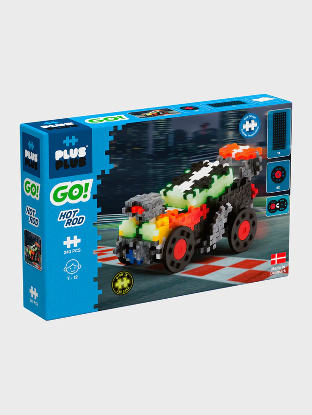 Plus-Plus is known for its high quality and durability, and the Hot Rod is no exception. It is built to withstand hours of play and can proudly be displayed on the shelf between races.