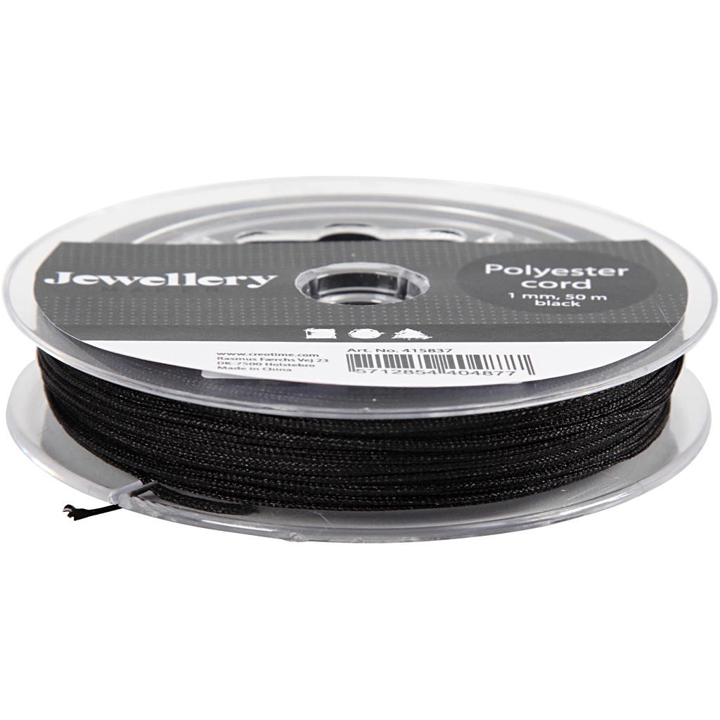 Polüesternöör, paksus 1 mm, must, 50 m/ 1 rull