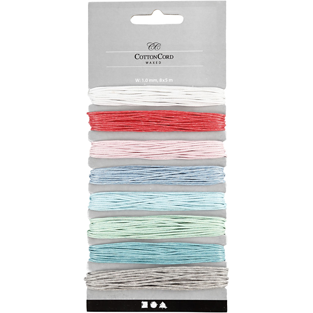 Puuvillane nöör, paksus 1 mm, vahatatud, pastelsed värvid, 8×5 m/ 1 pakk