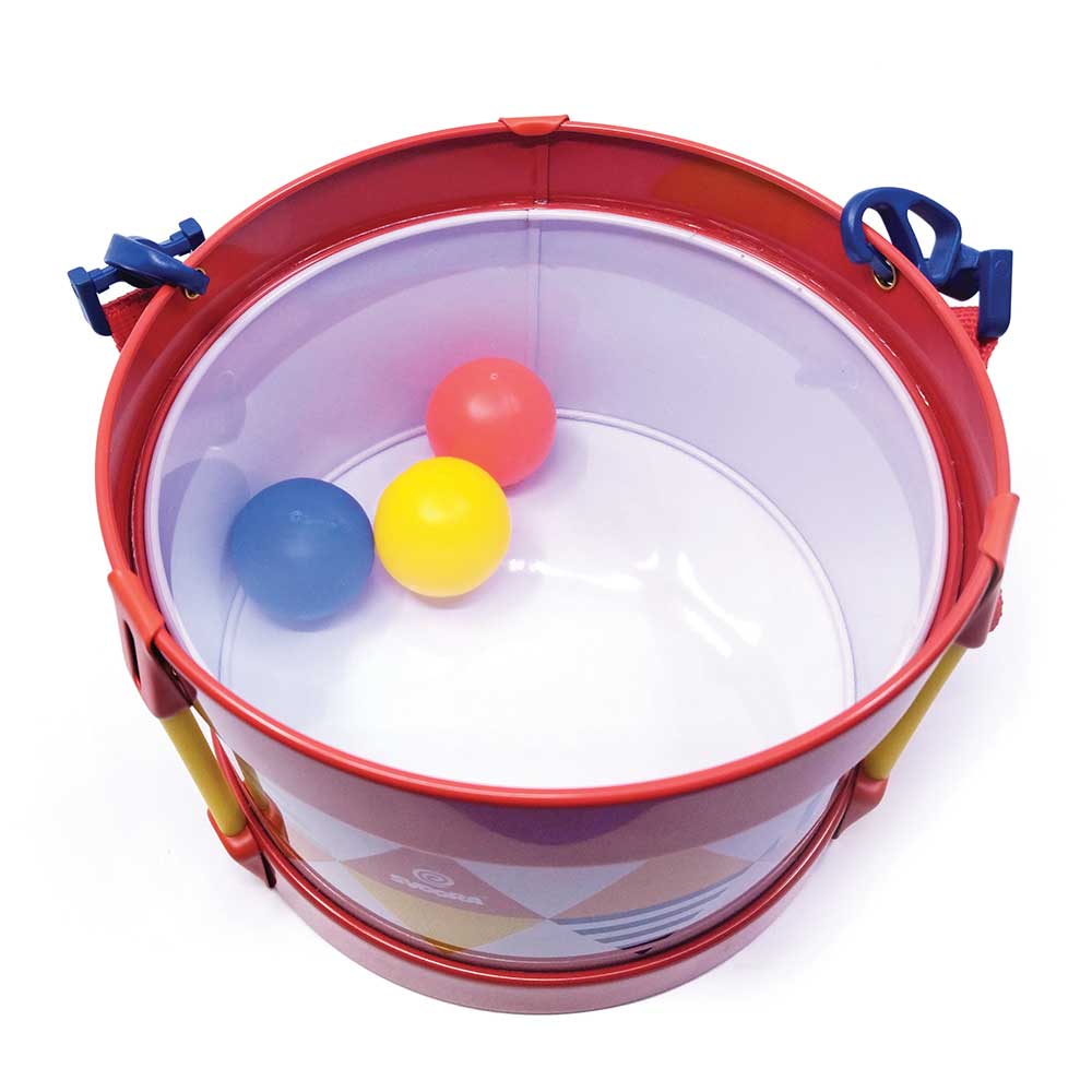 Värviline ja kerge plektrumm, mis sisaldab kahte trummipulka, sees kolm palli ning kanderihma. Täiuslik vahend varajaseks muusikaliseks hariduseks!