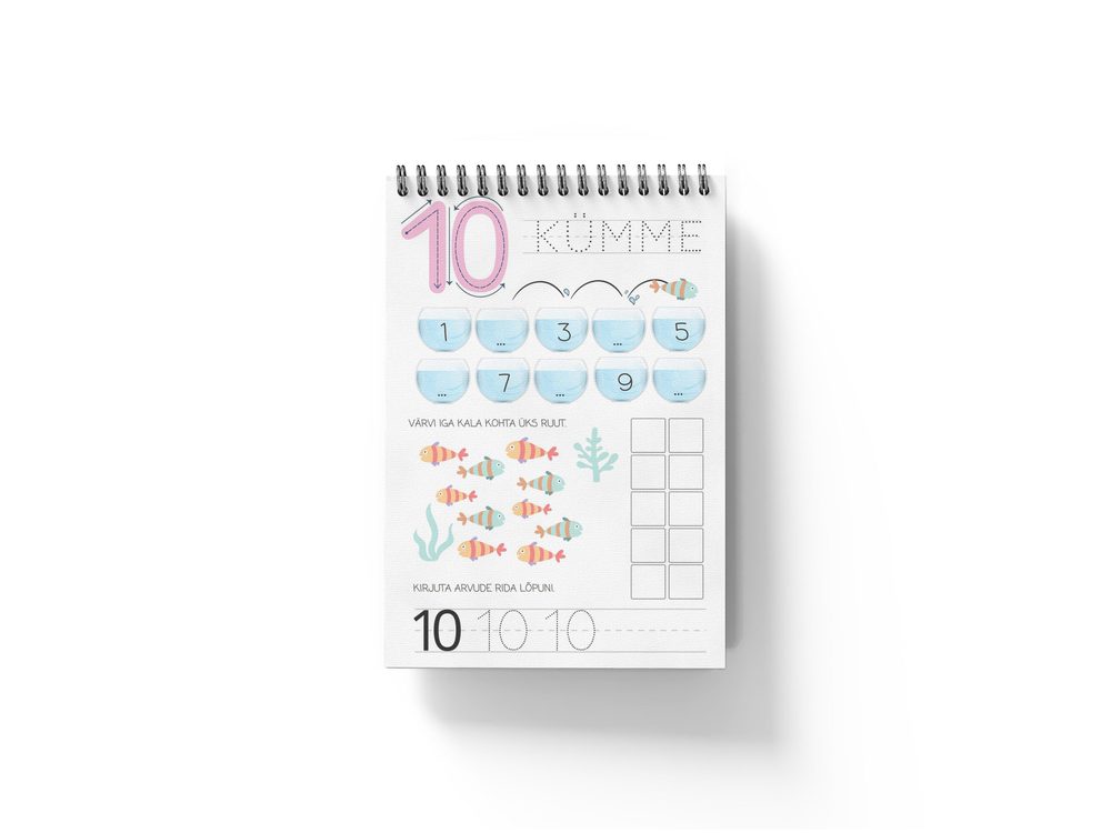 Tegelusvihik “Numbrid” sisaldab kokku 32 töölehte, millel saab laps: