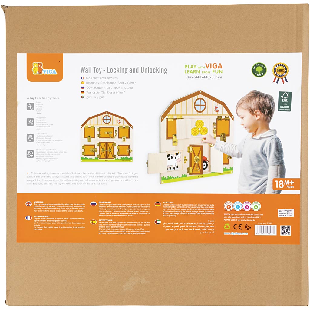 Kutsuv maja, mille uksed on erinevate lukustamis- ja sulgemisfunktsioonidega. Iga ukse taga on erinev, ereda välimusega pilt. Soodustab uudishimu ning parandab peenmotoorikat ja silmade-käe koordinatsiooni.