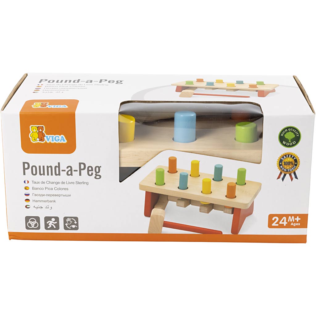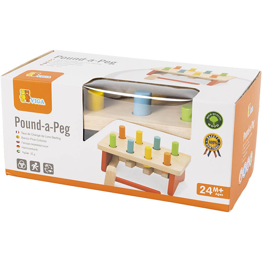 Atraktiivne puidust vasarapink väikelastele. Laps treenib oma silmade-käe koordinatsiooni, lüües haamriga pulkade vastu. Stimuleerib ka peenmotoorikat ja keskendumisvõimet