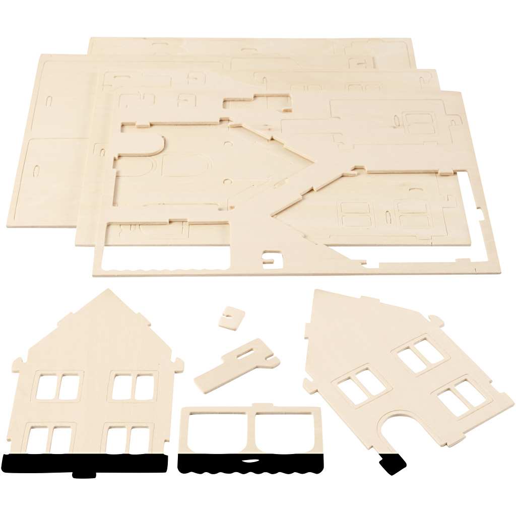 3D puidust ehituskomplekt, maja verandaga, suurus 22,5x16x17,5, 1 tk.