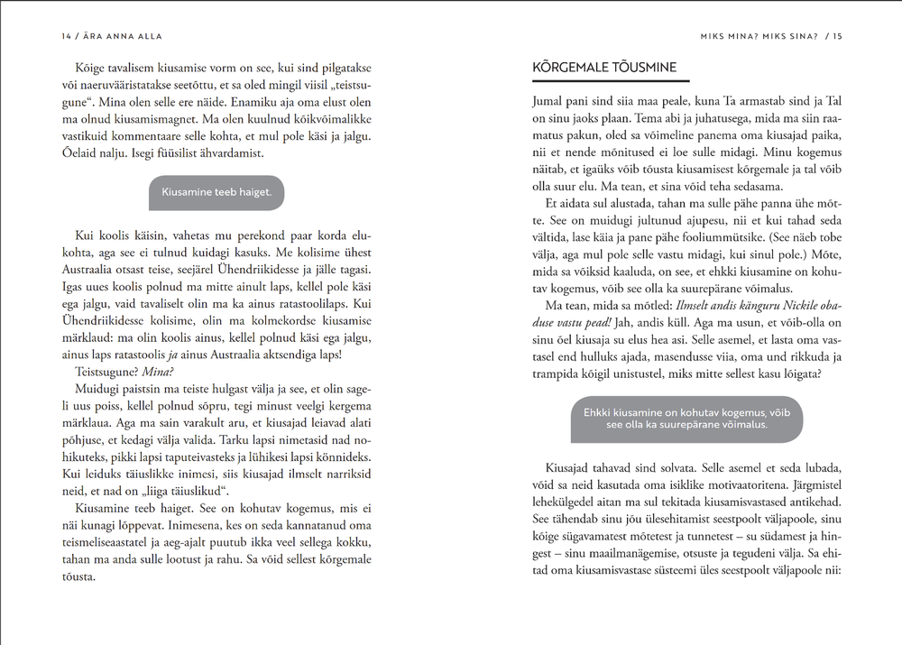 - Keskendumine küberkiusamisele: Tänapäeva digitaalses maailmas on küberkiusamine tõsine probleem. Vujicic käsitleb seda teemat põhjalikult, pakkudes lugejale tööriistu ja teadmisi, kuidas sellistes olukordades toime tulla.