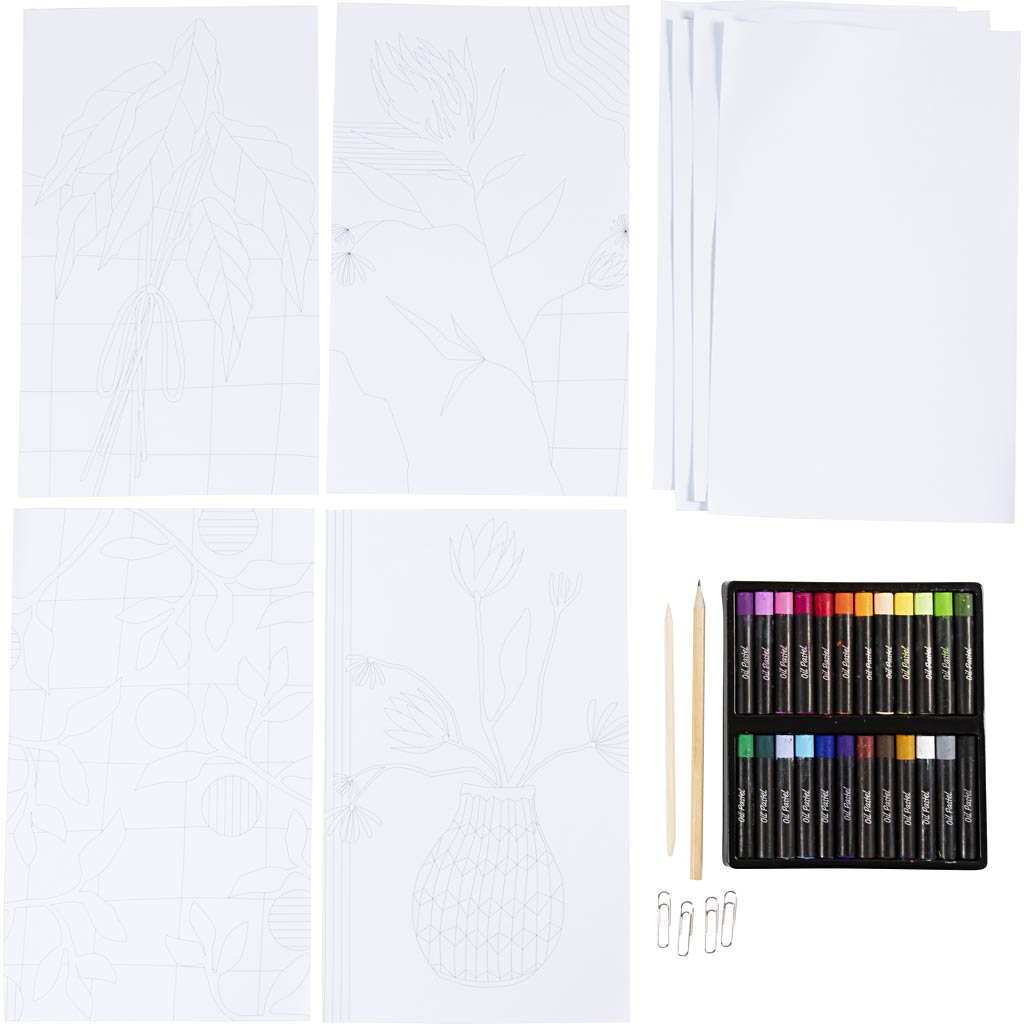 Craft Kit Õlipastellid, lilled, erinevad värvid, 1 pakk