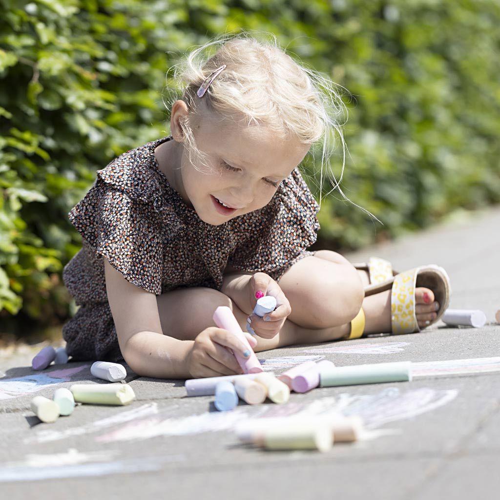 Need suured, ümarad kriidid on spetsiaalselt loodud sujuvaks pealekandmiseks pindadele, nagu asfalt ja sillutuskivid.