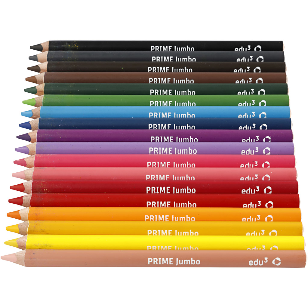 Edu Jumbo värvipliiatsid, paksus 10 mm, münt 6,25 mm, erinevad värvid, 18 tk/ 1 pakk