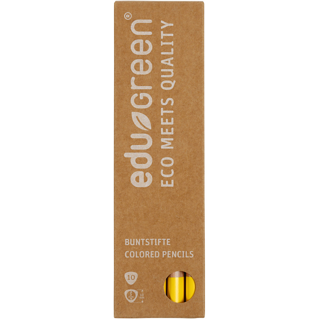 Kolmekujuliste värvipliiatsitega, mille fookuses on kvaliteet. Värvipliiatsid on kaetud veepõhise lakiga ja pakendatud ümbertöödeldud materjalidesse.