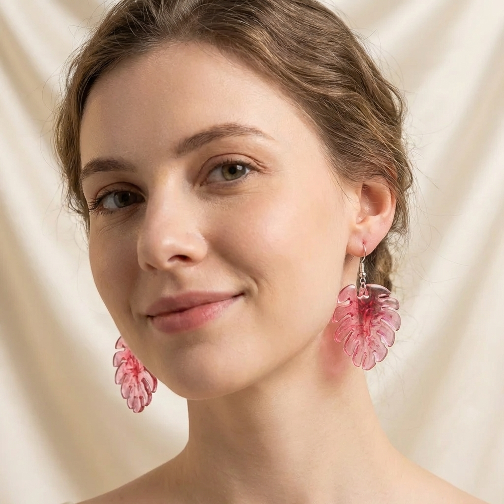 Epoxi kõrvarõngad, lehed, roosa