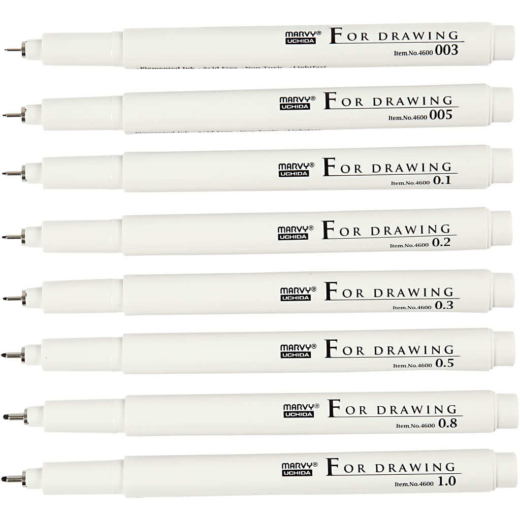Joonistusmarkerid, joon 0,03+0,05+0,1+0,2+0,3+0,5+0,8+1,0 mm, must, 8 tk/ 1 pakk