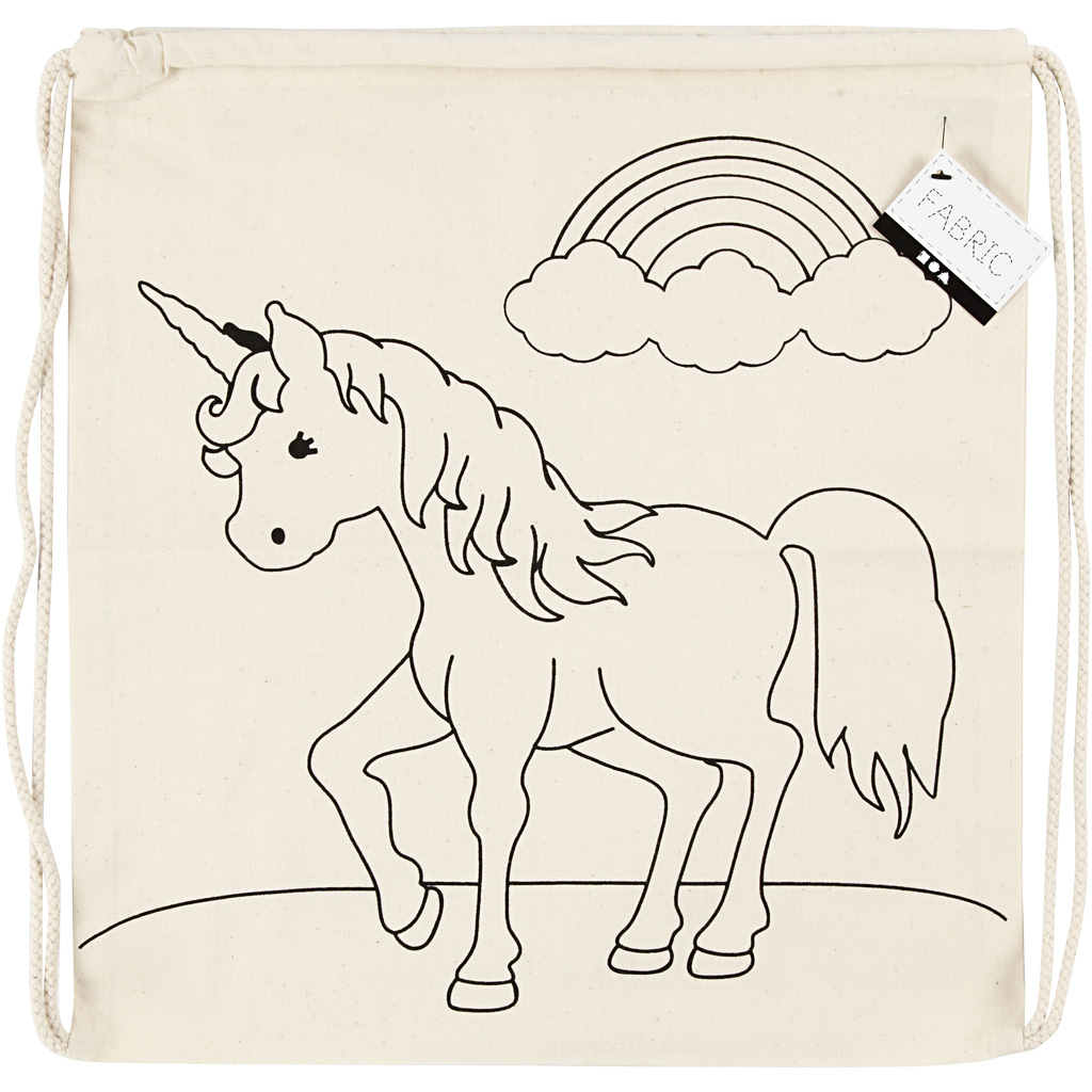 Olge loominguline ja kujundage see mugav spordikott, mille ühele küljele on eelnevalt mustalt trükitud motiivid. Kasutage oma lemmikvärvides kangamarkereid, et muuta kott ainulaadseks. Kott on valmistatud 100% puuvillast ja sellel on praktiline tõmblukk, mis hoiab asju turvaliselt ja võimaldab seda hõlpsasti kaasas kanda.