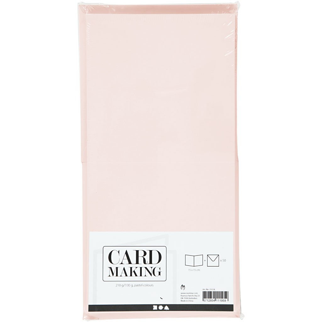 Kaardid ja ümbrikud, kaardi suurus 15×15 cm, ümbriku suurus 16×16 cm, 110+220 g, pastelsed värvid, 50 komplekti/ 1 pakend.