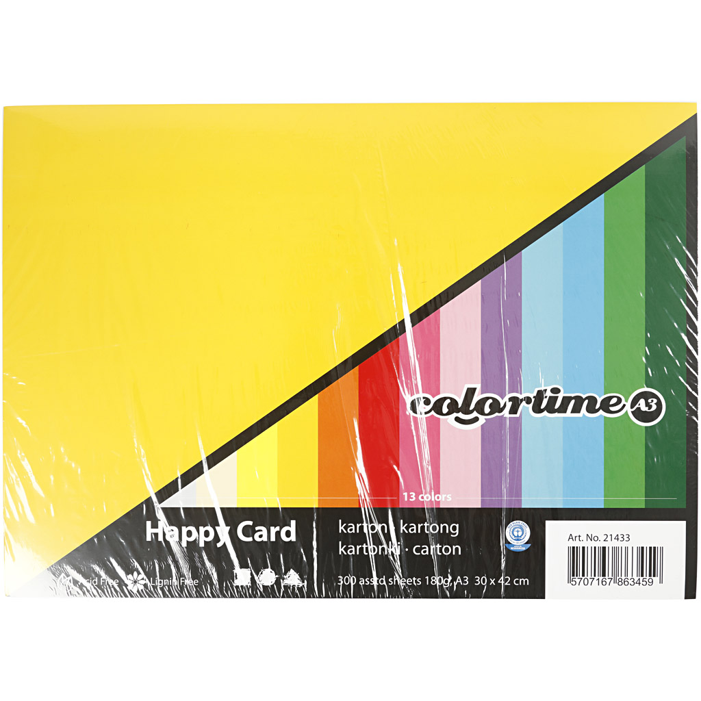 Kevadkartong, A3, leht 297×420 mm, 180 g, värviline sortiment, 300 ass-lehte/ 1 pakk