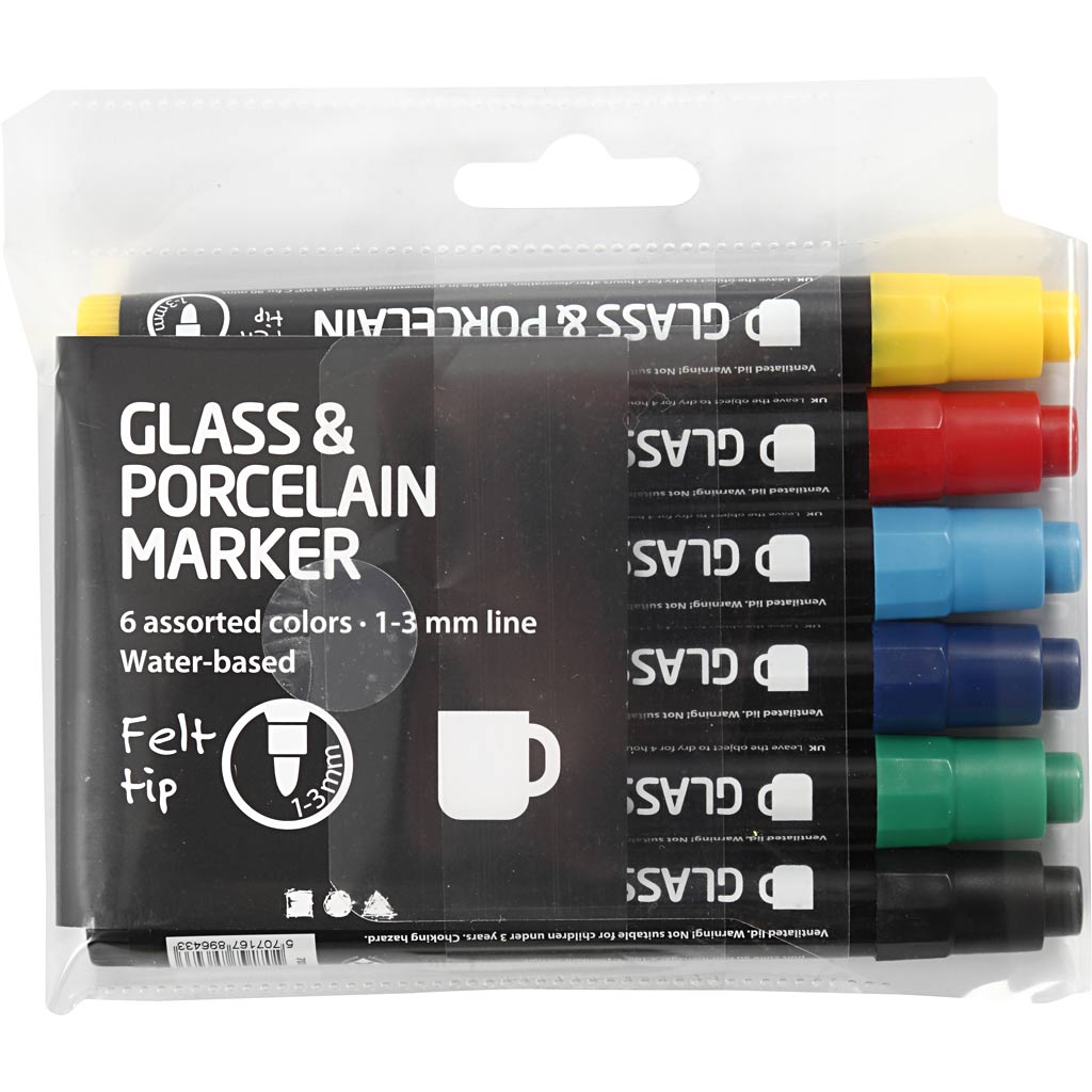 Klaas- ja portselanimarkerid, joon 1-3 mm, pool-läbipaistmatu, 6 tk/ 1 pakk