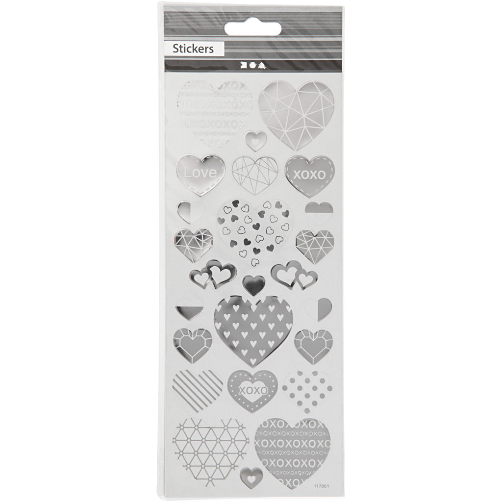 Kleebised, südamed, leht 10×24 cm, ca. 25 tk, hõbedane, 1 leht