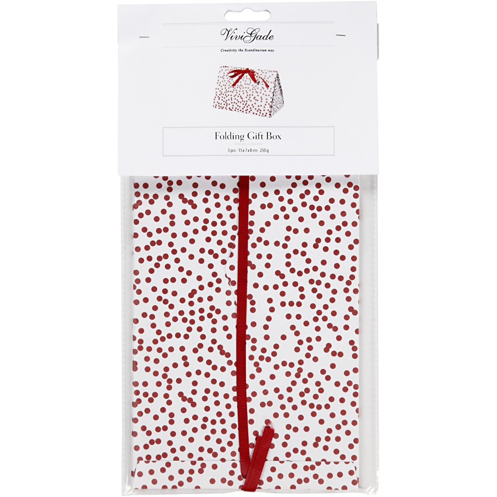 Kokkupandav kinkekarp, punkte, suurus 15x7x8 cm, 250 g, punane, 3 tk/ 1 pakk