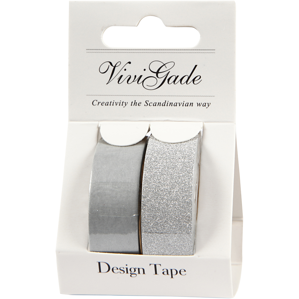 Washi tape with matt and glitter surface from the Vivi Gade Design series. Pack with 1 roll washi tape of 10 m and 1 roll of glitter tape of 7 m