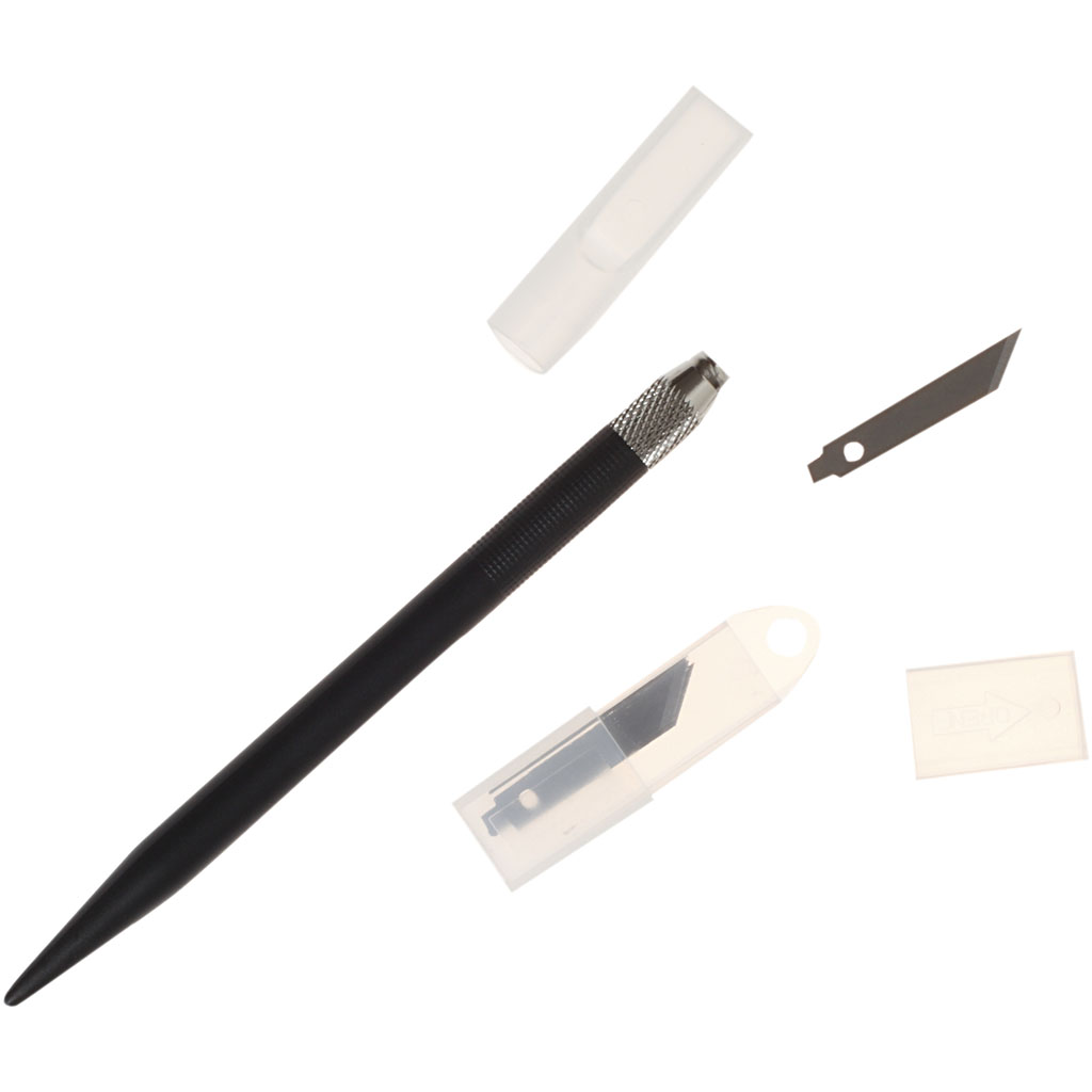 Plastikust käepidemega pliiatsilaadne nuga – 6 tera kaasas (art.nr. 11604)