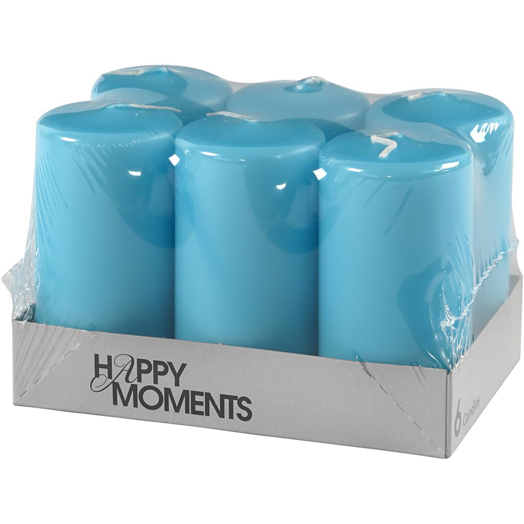 Küünlad, H: 100 mm, diameeter. 50 mm, helesinine, 6 tk/ 1 pakk