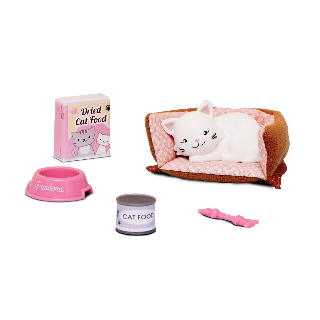 Komplektis on Pandora, tema kassivoodi, purk toiduga, maiustega karp, piimakauss ja Pandora lemmikmänguasi