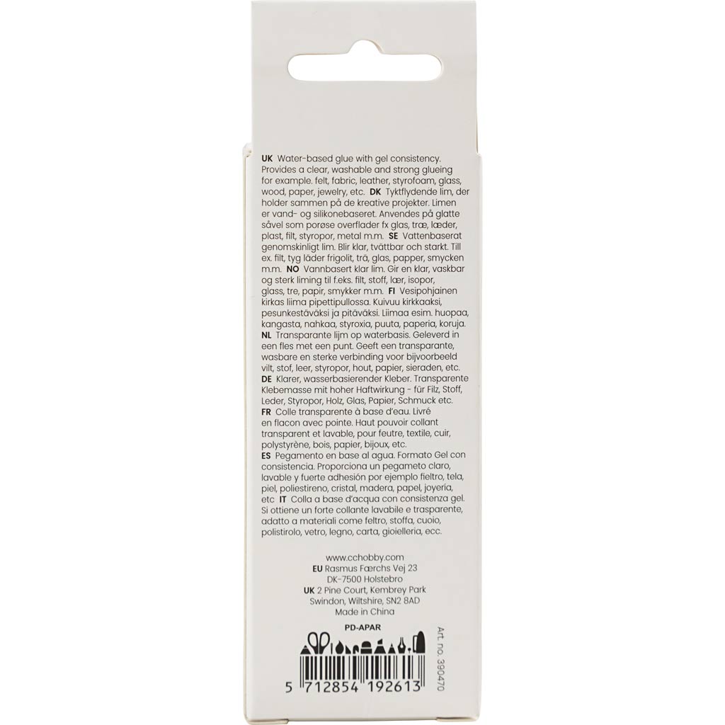 Veepõhine liim, mis on geelja konsistentsiga. Annab selge, pestava ja tugeva liimi näiteks vildile, kangale, nahale, vahtplastile, klaasile, puidule, paberile, ehetele jne.
