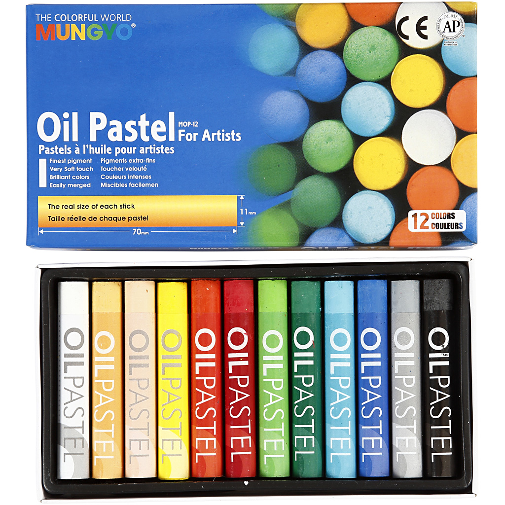 Mungyo Õlipastell, L: 7 cm, paksus 11 mm, värvide valik, 12 tk/ 1 pakk