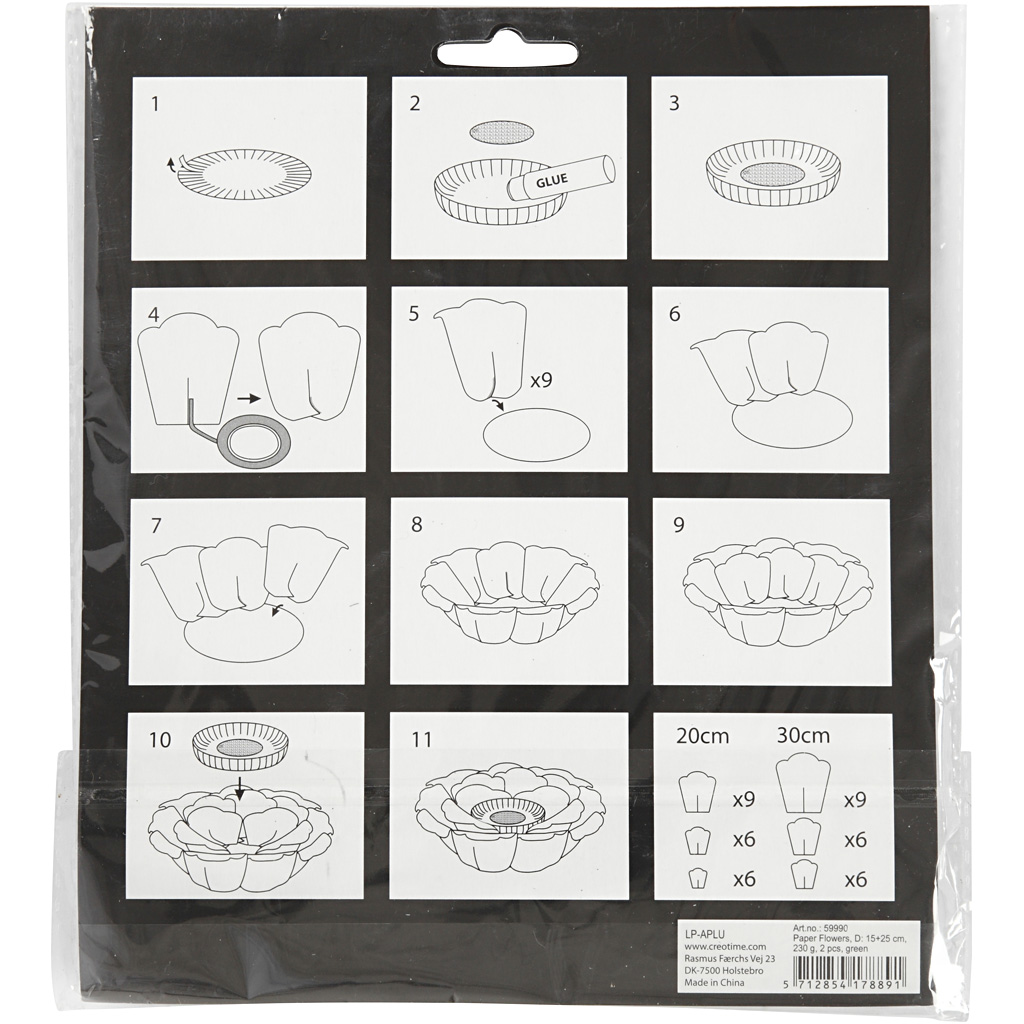 Komplekt 2 ühtlase suurusega lille jaoks, mõlemad sisaldavad erinevaid osi, mis on tembeldatud struktureeritud kaardile. Komplektis on üksikasjalikud juhised ja kahepoolne teip. Kokku 10 komplekti, igaüks 9 erinevas värvitoonis