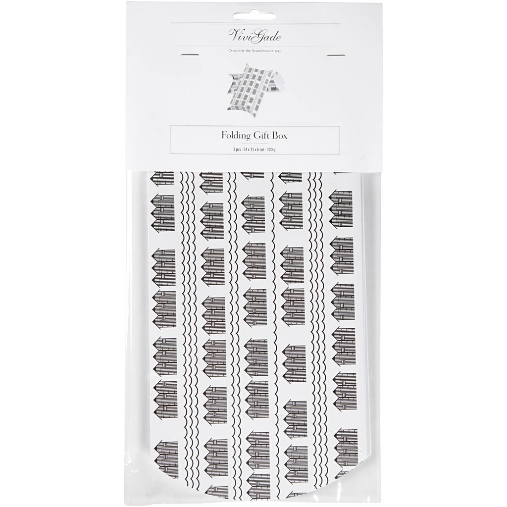 Kinkekarp tugevast siidimustrist kartongist Vivi Gade kujundusega. Tarnitakse kokkuklapitud